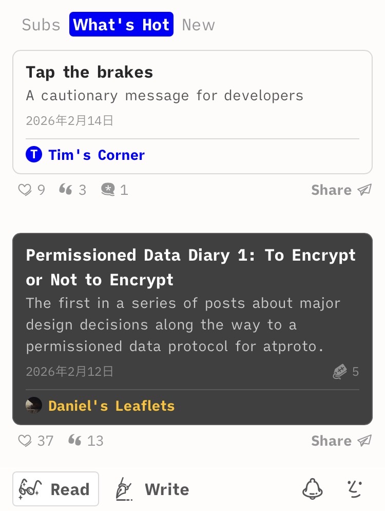 Leaflet Reader gets hotter! 📖🔥🍃 • Three feeds: Subs, What's Hot, New! • Not just Leaflet, *all* @standard.site posts! • Preview comments & mentions! • New "recommend" button! • Reworked nav with "Read" & "Write" modes leaflet.pub/reader Lots to keep improving; let us know what you think ✨