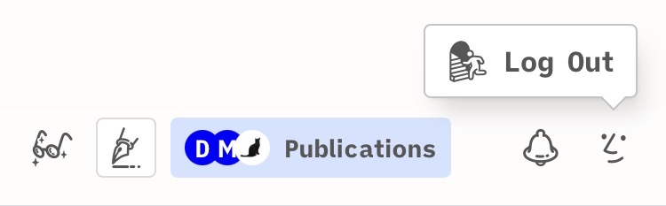 Read(メガネマーク)とWrite (万年筆マーク)鈴のマークは通知、右の顔マークはログアウト