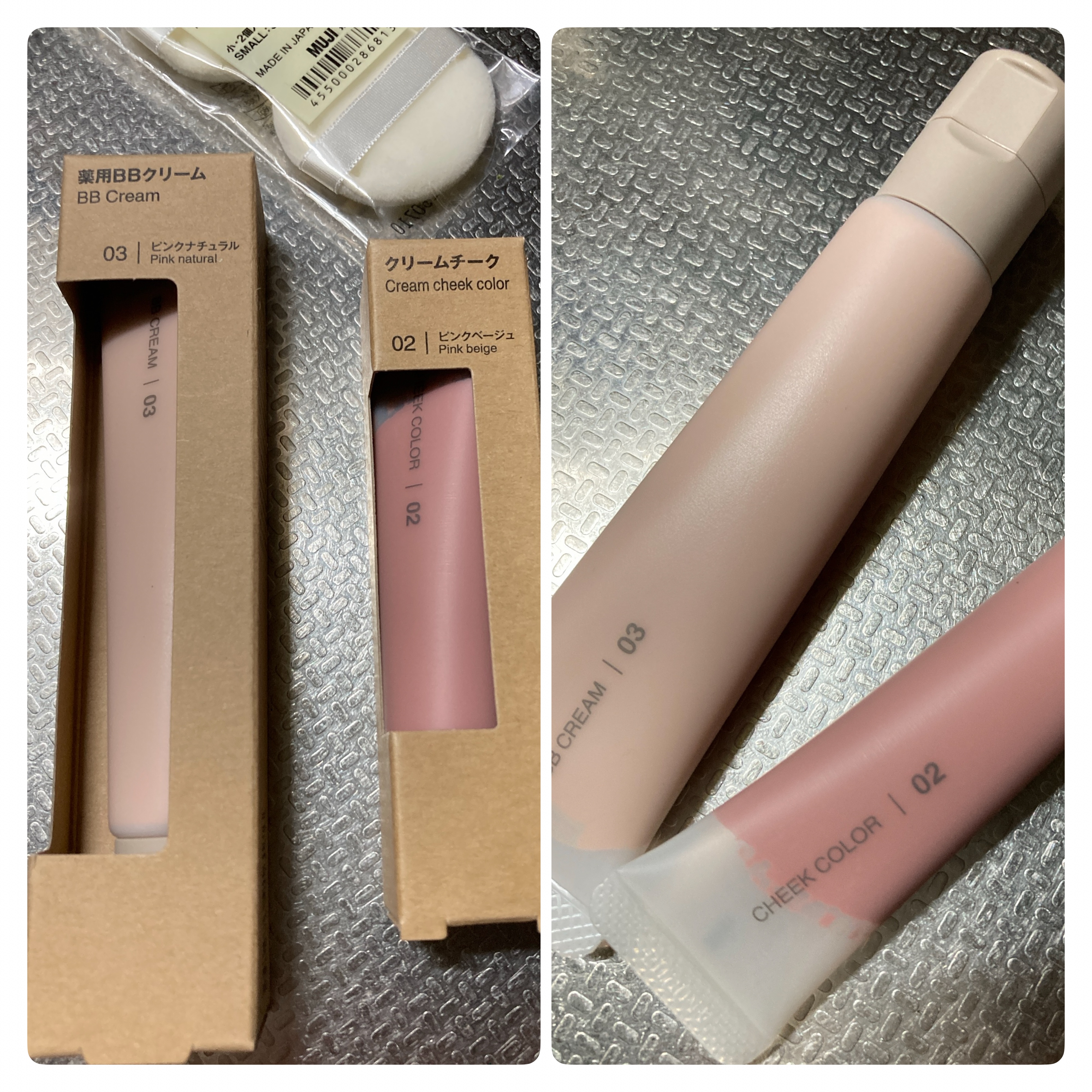 無印良品のBBクリーム初めて買ってみて使ってみると使いやすいし肌馴染みもいい。クリームチークもピンクベージュでちょうどよかった。